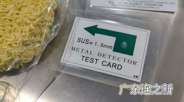 當(dāng)方便面含有不銹鋼、鐵、銅等金屬時,廣東連之新金檢機發(fā)出鳴叫,紅燈閃爍。